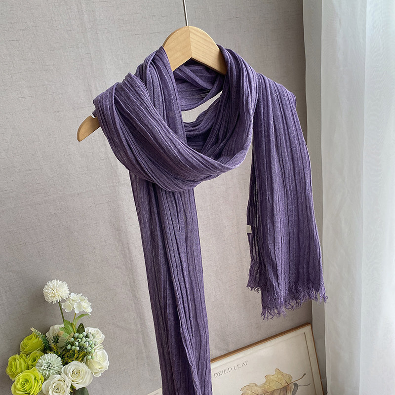 秋天透气肌理纹棉麻围巾长款文艺气质扎染个性围脖女春秋紫色百搭
