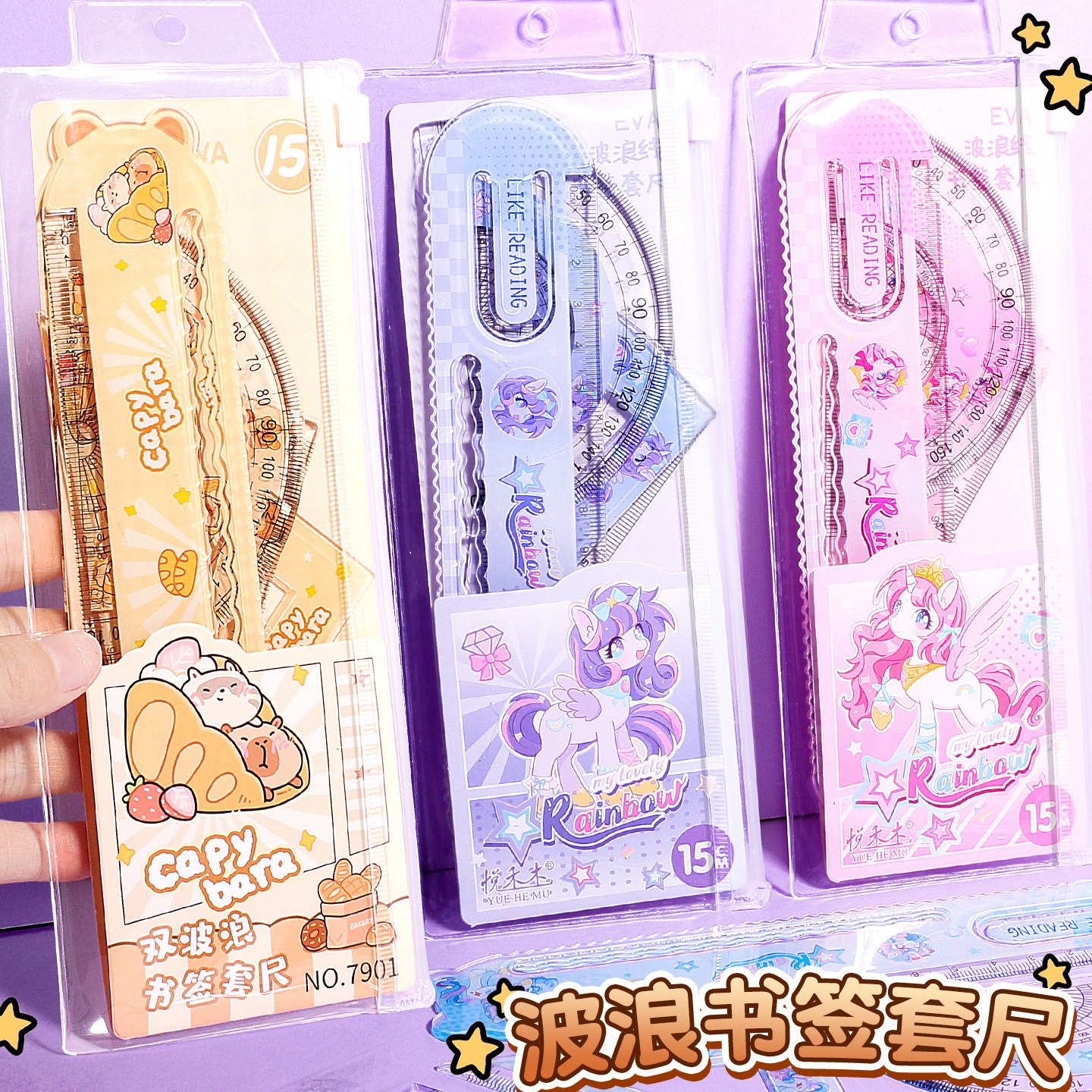 卡通套尺卡皮巴拉尺子四件套小学生专用高颜值小马量角器三角可爱