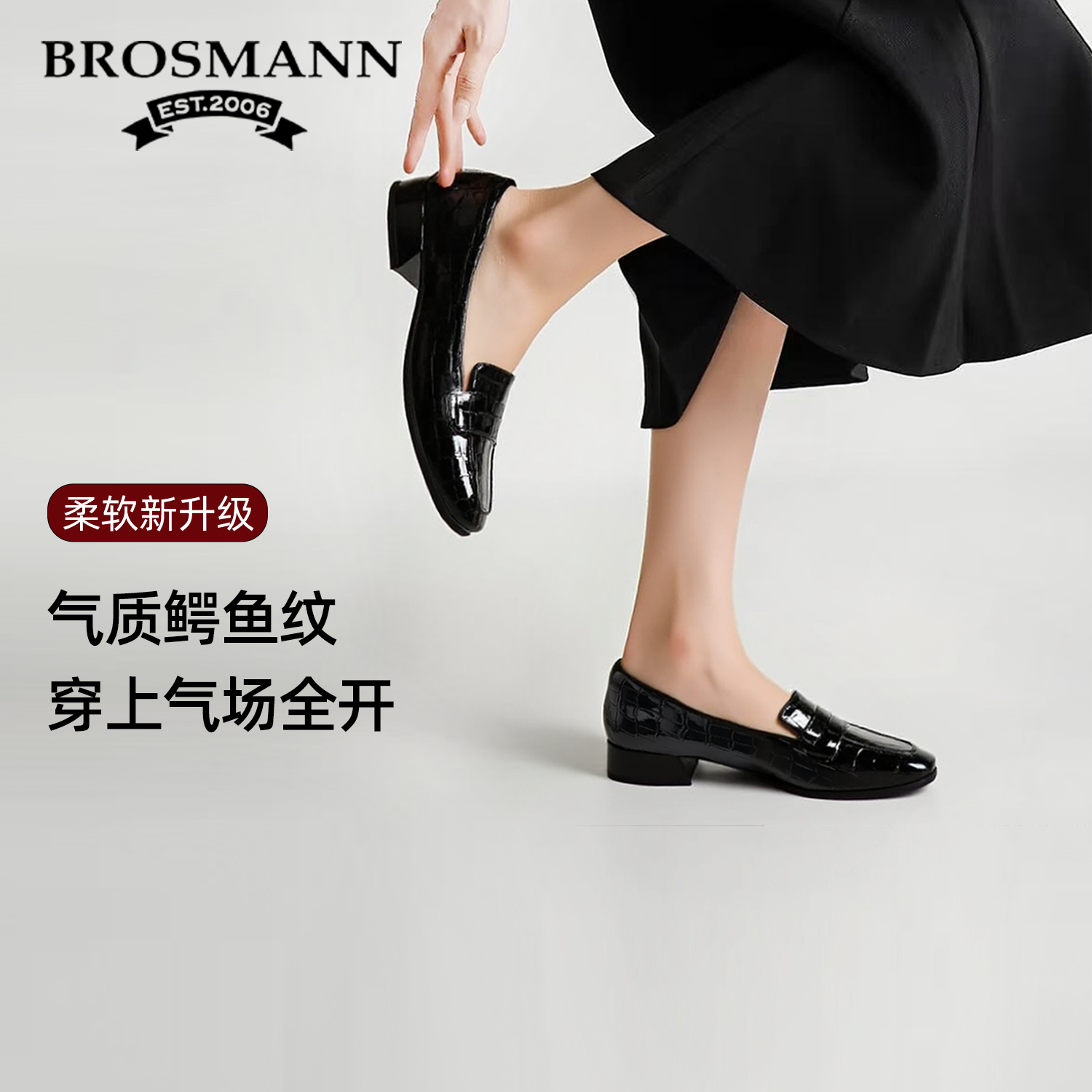 BROSMANN/宝舒曼乐福鞋女款2025新款漆皮平底鞋黑色时尚百搭单鞋