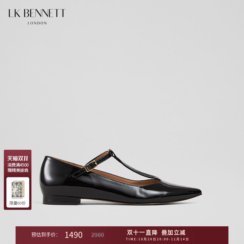 lkbennett黑色尖头漆皮平底鞋2025年夏新款时尚进口牛皮T字带
