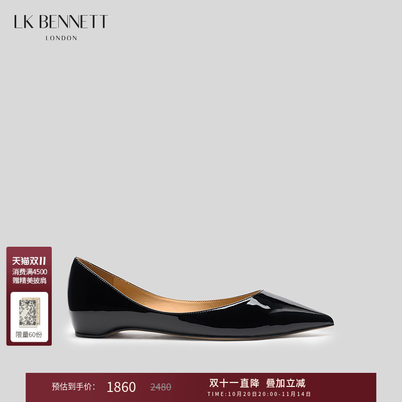 lkbennett黑色漆皮平底鞋女2025年秋新款真皮浅口尖头神秘高贵