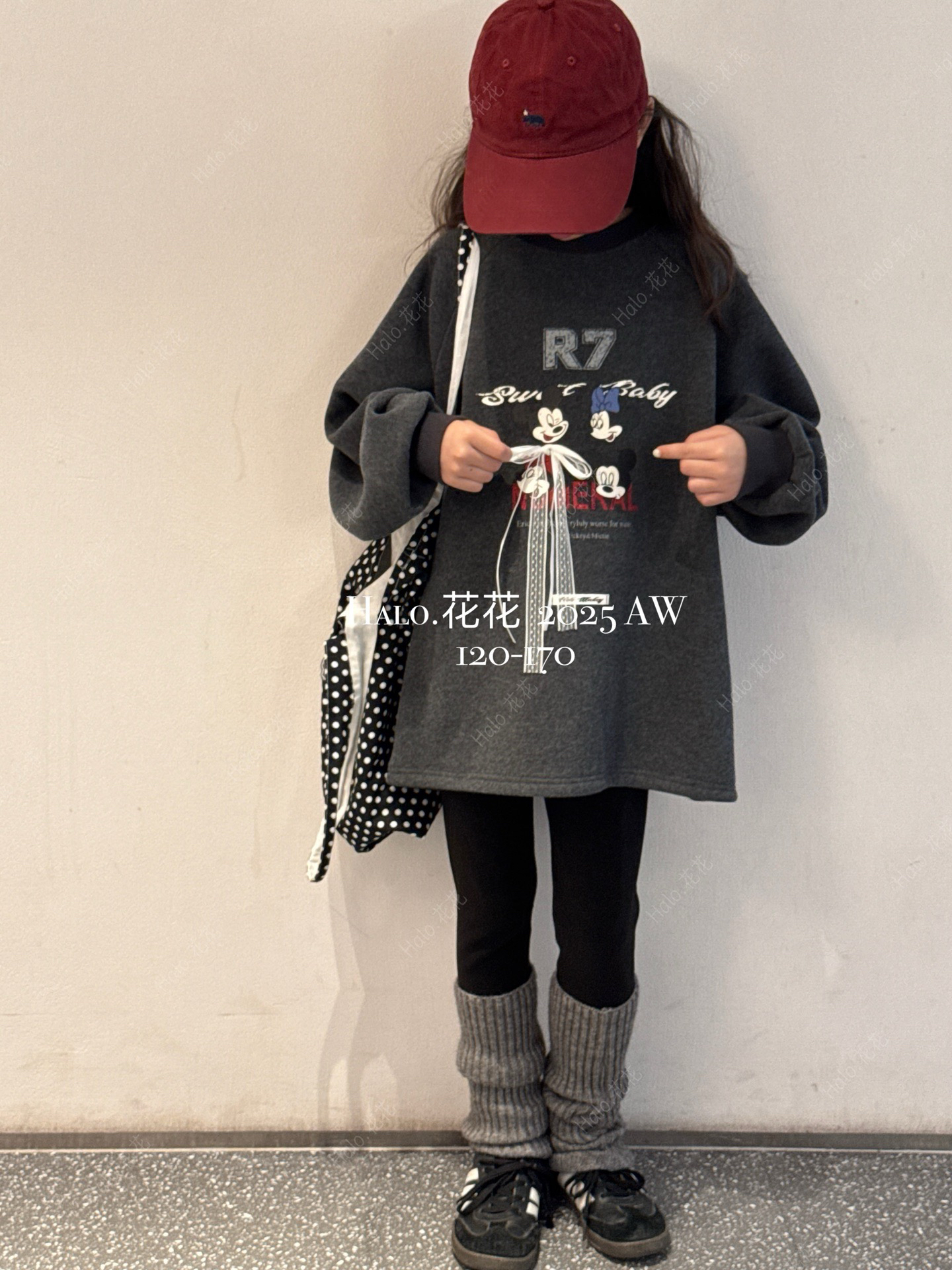 花花童装25秋冬女童洋气卡通印花加绒加厚卫衣T恤儿童中长款上衣