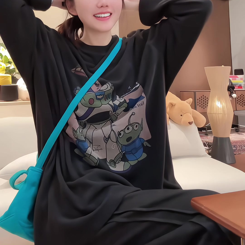 2024春秋新款爆款纯棉卡通卫衣女大码宽松中长款减龄长袖t恤上衣