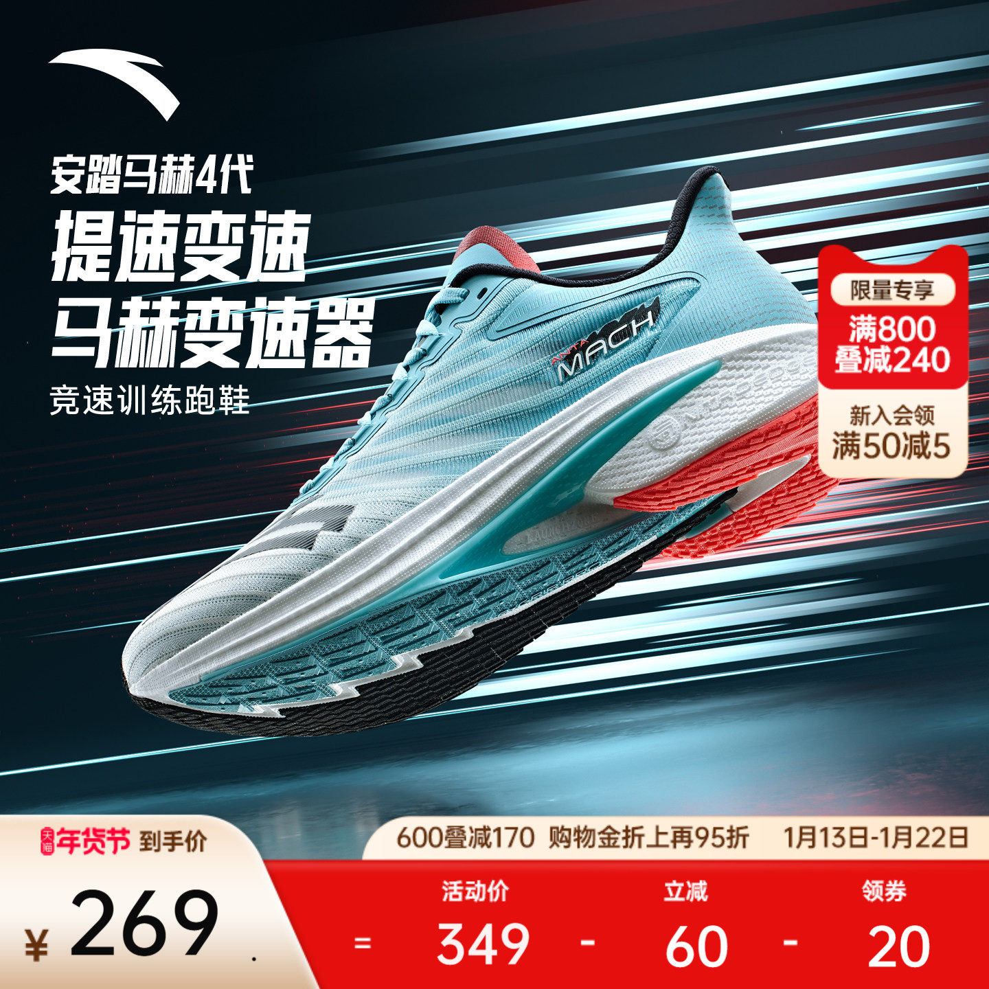 安踏马赫4代丨氮科技专业减震竞训跑步鞋男中考体测学生运动鞋子