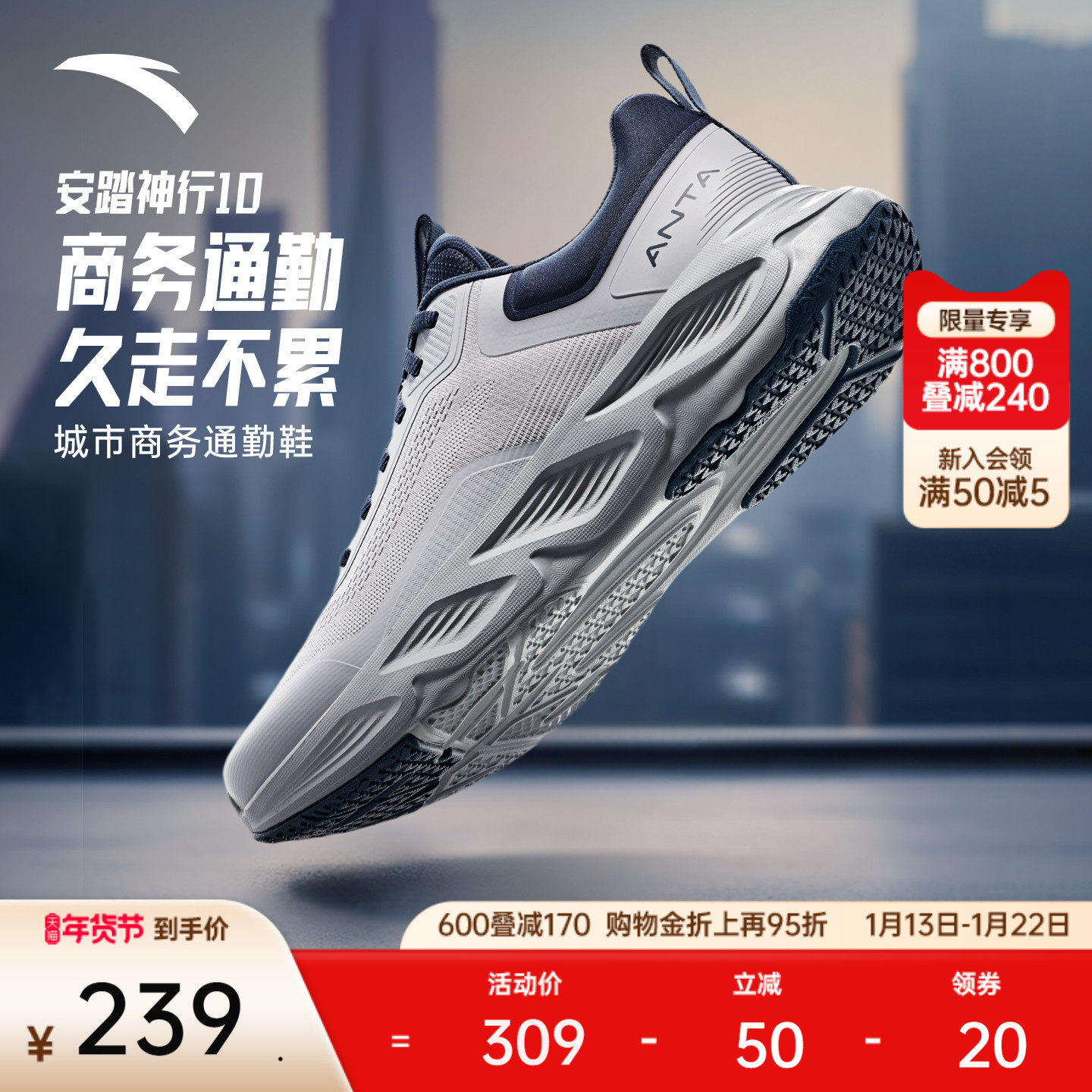 安踏神行10丨轻便缓震男鞋跑步训练鞋秋冬新款健身通勤鞋运动鞋子