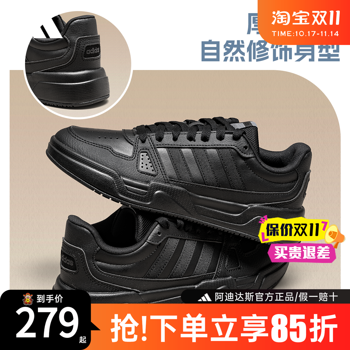 阿迪达斯运动鞋三叶草男鞋2025冬季新款休闲鞋贝壳头板鞋小白鞋
