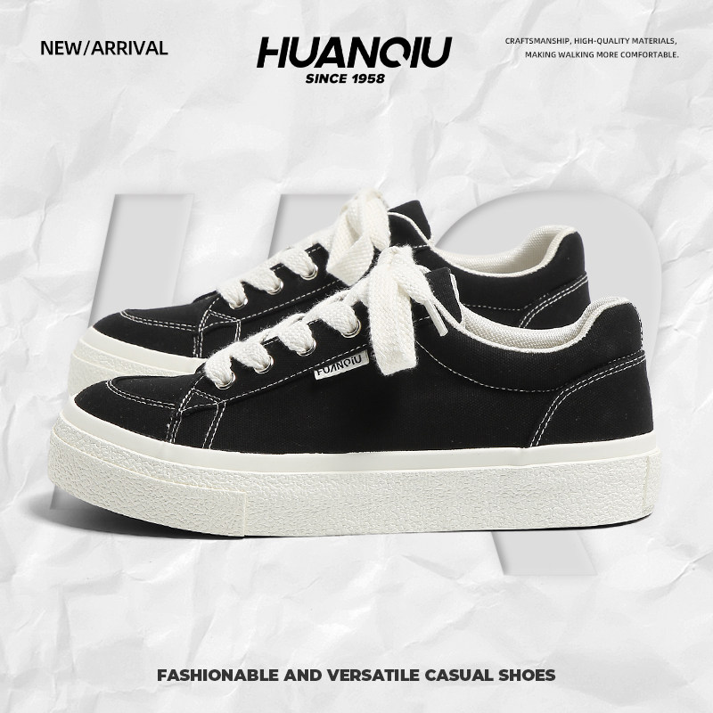 环球黑色帆布鞋男女2026春季新款厚底休闲板鞋百搭运动男士休闲鞋