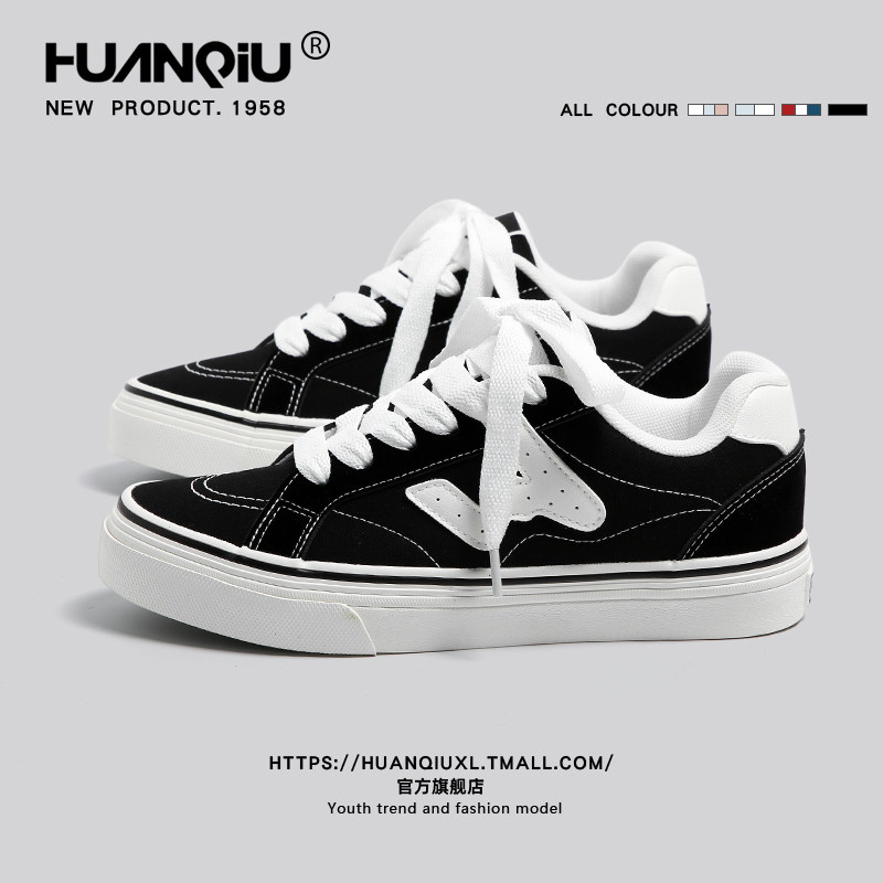 环球经典黑白帆布鞋女款2026春季新款校园风翻毛皮百搭国潮滑板鞋