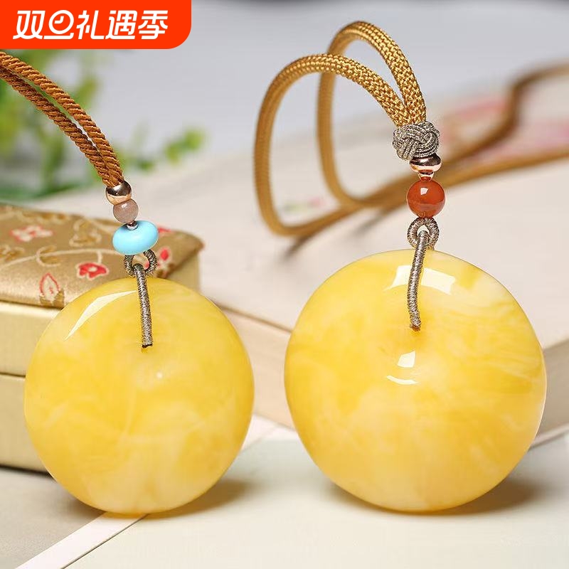 天然蜜蜡水滴吊坠鸡油黄平安扣无事牌毛衣项链琥珀挂件男女款配饰
