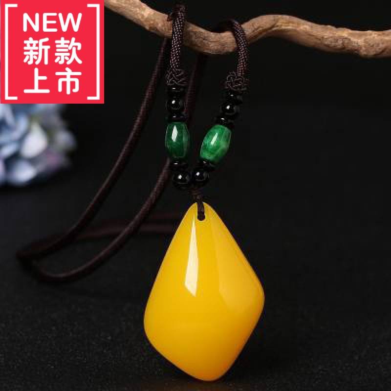 蜜蜡水滴毛衣链男女百搭民族风吊坠琥珀鸡油黄衣服配饰老蜜蜡挂坠