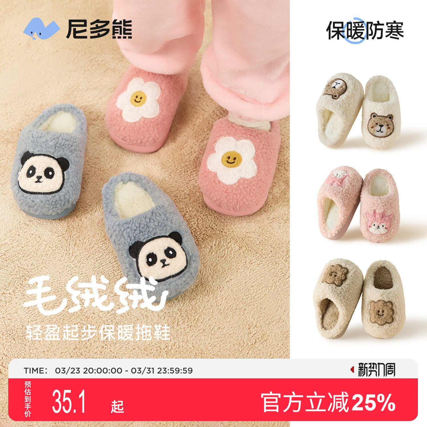 尼多熊儿童棉拖鞋秋冬宝宝室内拖鞋棉鞋保暖防滑家居鞋男童女童鞋