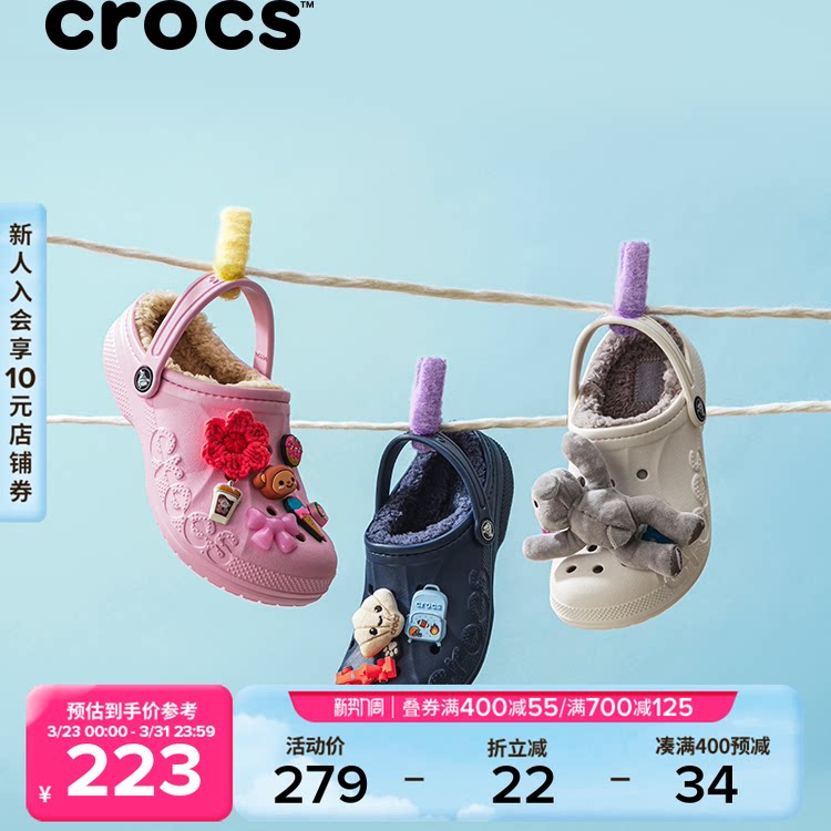 Crocs卡骆驰洞洞鞋成人男女童保暖加绒秋冬亲子棉鞋棉拖|207500