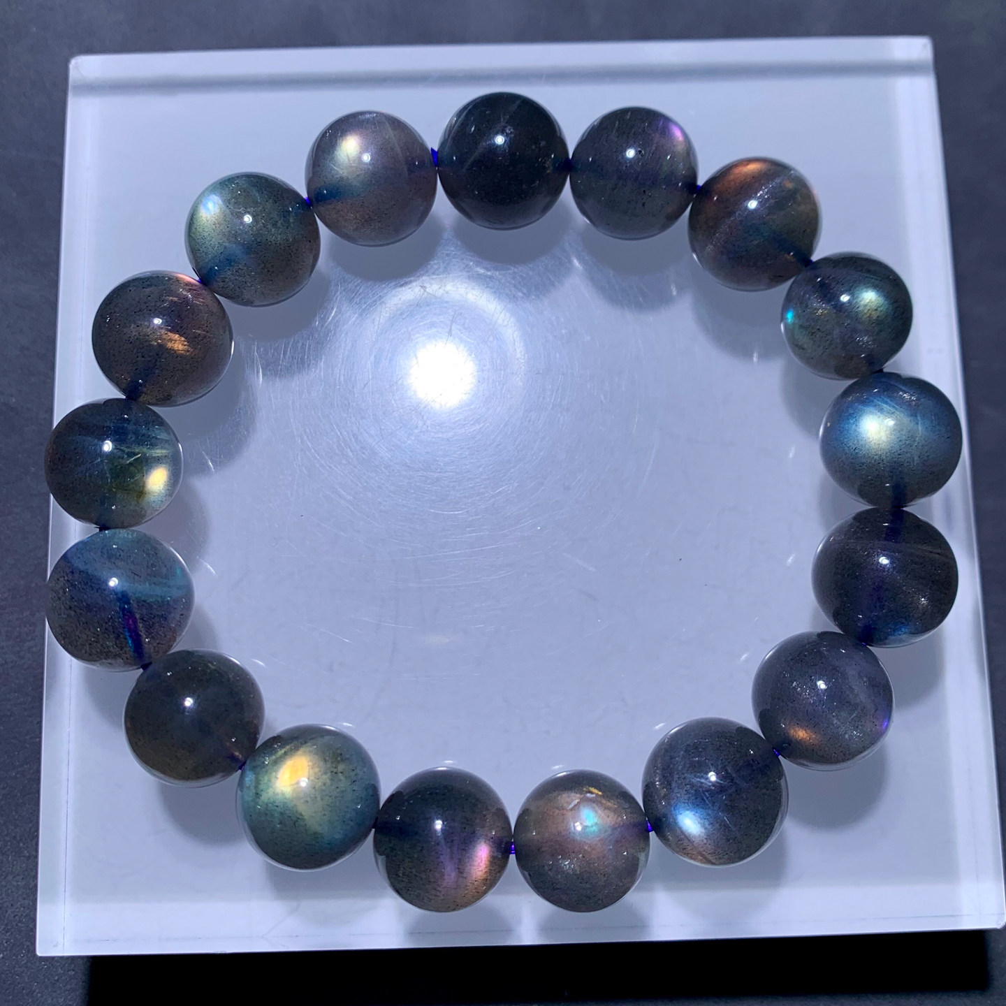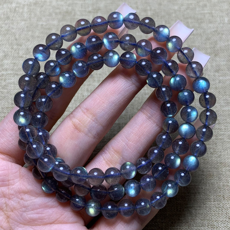 天然冰种星空拉长石三圈手链佛珠灰月光石蓝光彩虹光强光水晶饰品