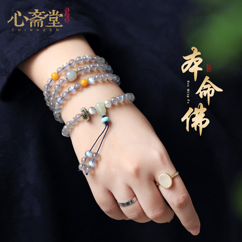 心斋堂【月舞】天然月光石佛珠手串108颗蓝光水晶马年本命年手链