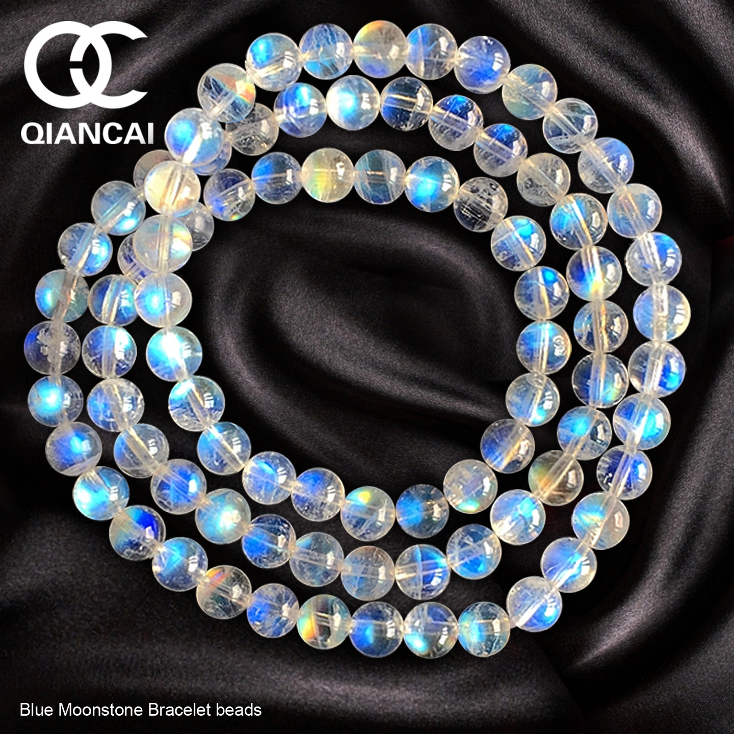 天然7A玻璃体蓝月光强蓝光冰透月光石diy手工串珠水晶手链散珠子