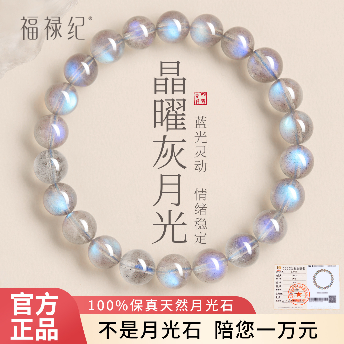 官方旗舰店天然灰月光拉长石月光石手串女蓝光猫眼水晶串珠手链男