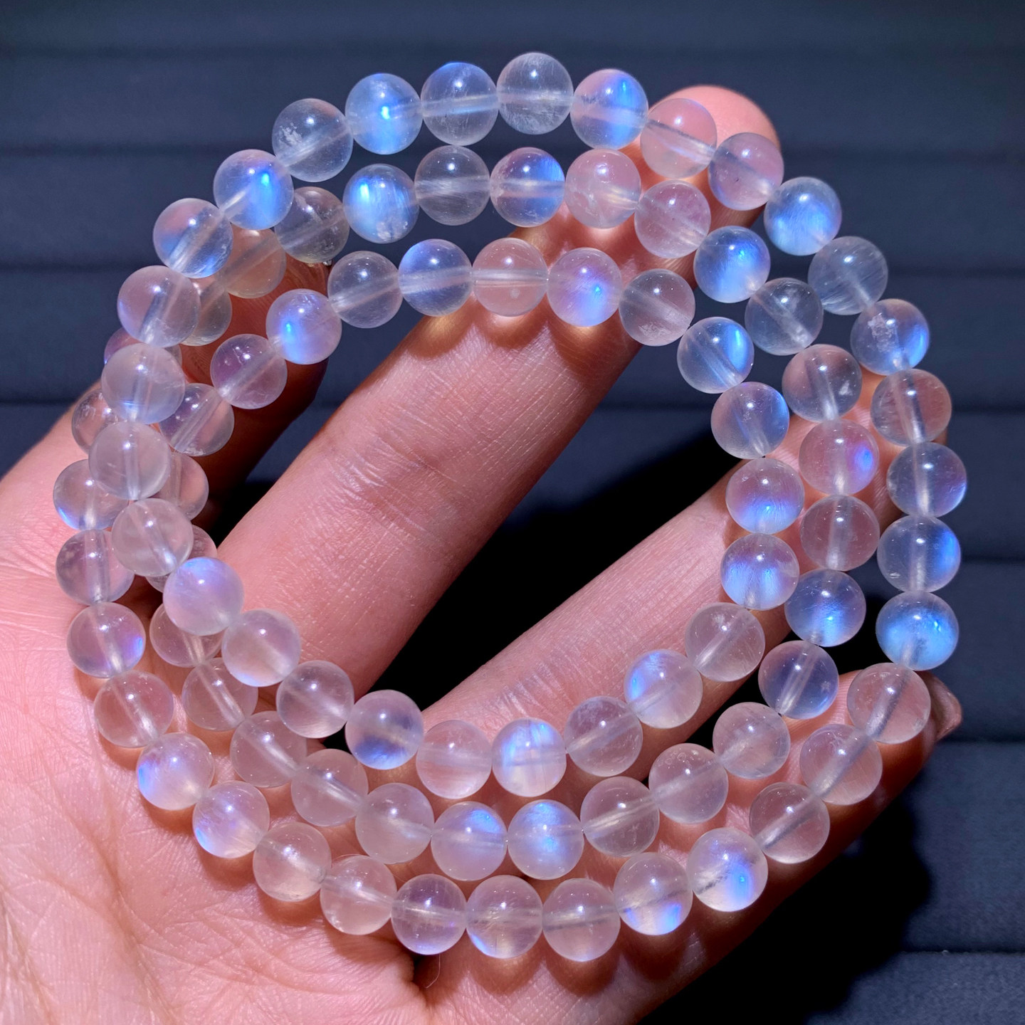 天然水晶冰种灰月光石多圈蓝光手链女三圈转运网红ins小众设计