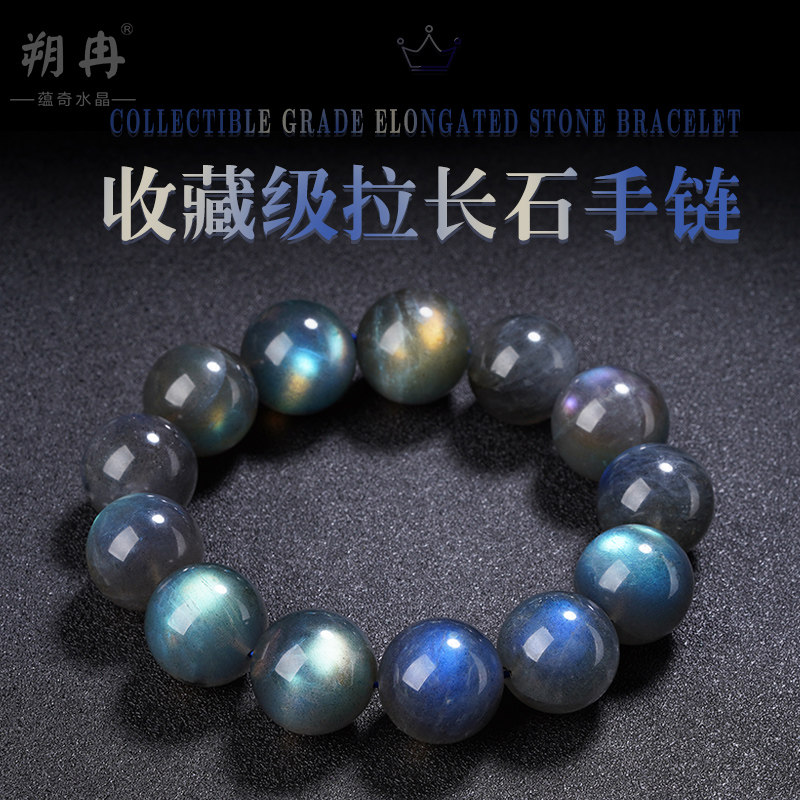 收藏级天然蓝光冰种拉长石手串女紫光月光石彩光灰月亮石水晶手链