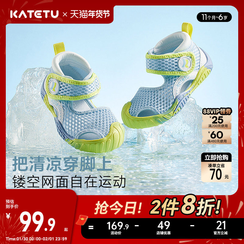 卡特兔儿童凉鞋男童学步婴儿鞋包头软底防滑沙滩鞋女童软底机能鞋