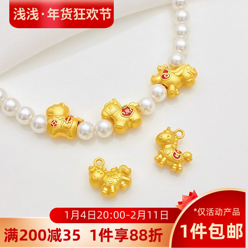 古法金保色奔腾小马招财生肖马隔珠吊坠手工diy手链项链饰品配件