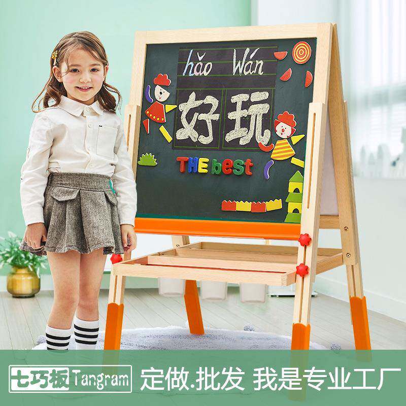 七巧板儿童双面写字涂鸦画画板小黑板支架式宝宝家用木制磁性画架