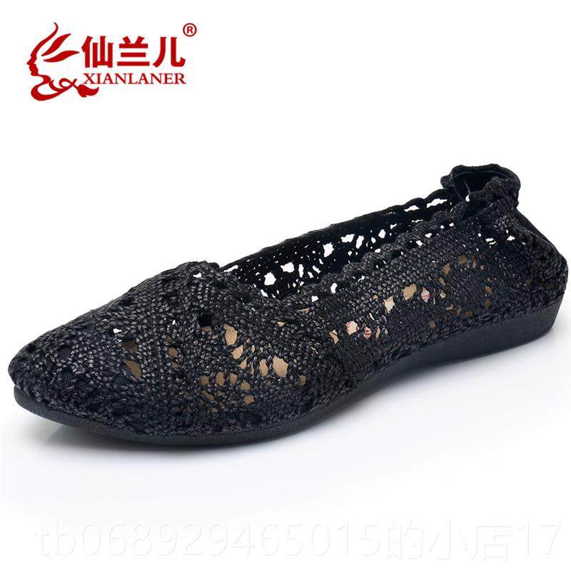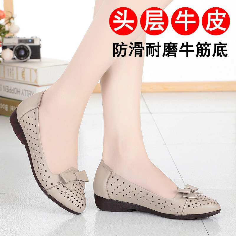 意尓康真皮女凉鞋平底单鞋女夏季新款镂空洞洞鞋软底中老年妈妈鞋