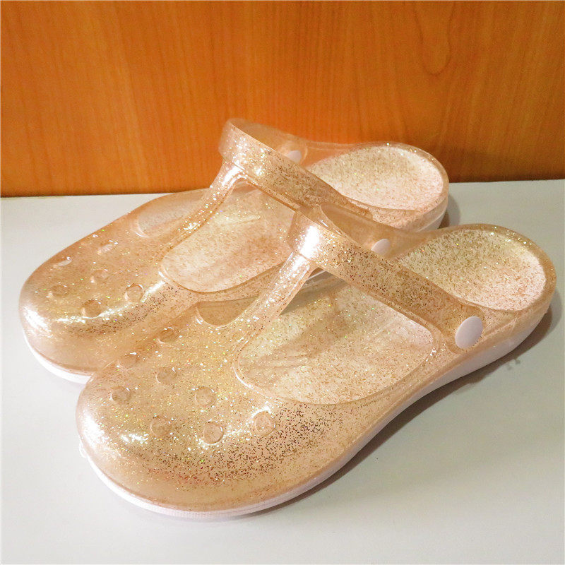 夏季女凉鞋平底果冻拼色塑胶防滑学生凉鞋沙滩外穿雨鞋百搭洞洞鞋