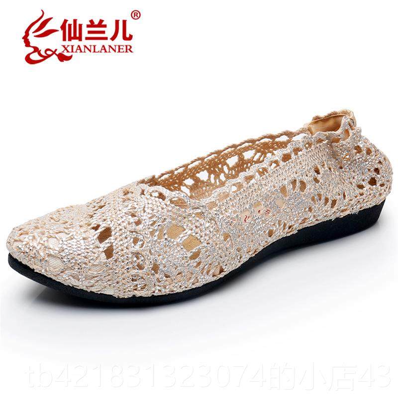 镂空女鞋夏季2021新款软底真皮鞋女凉鞋平底洞洞单鞋白色妈妈鞋子