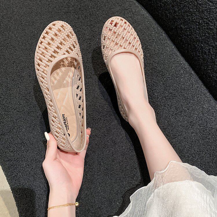 夏季女款洞洞镂空女鞋塑料白色凉鞋防滑平底护士鞋孕妇妈妈鞋舒适