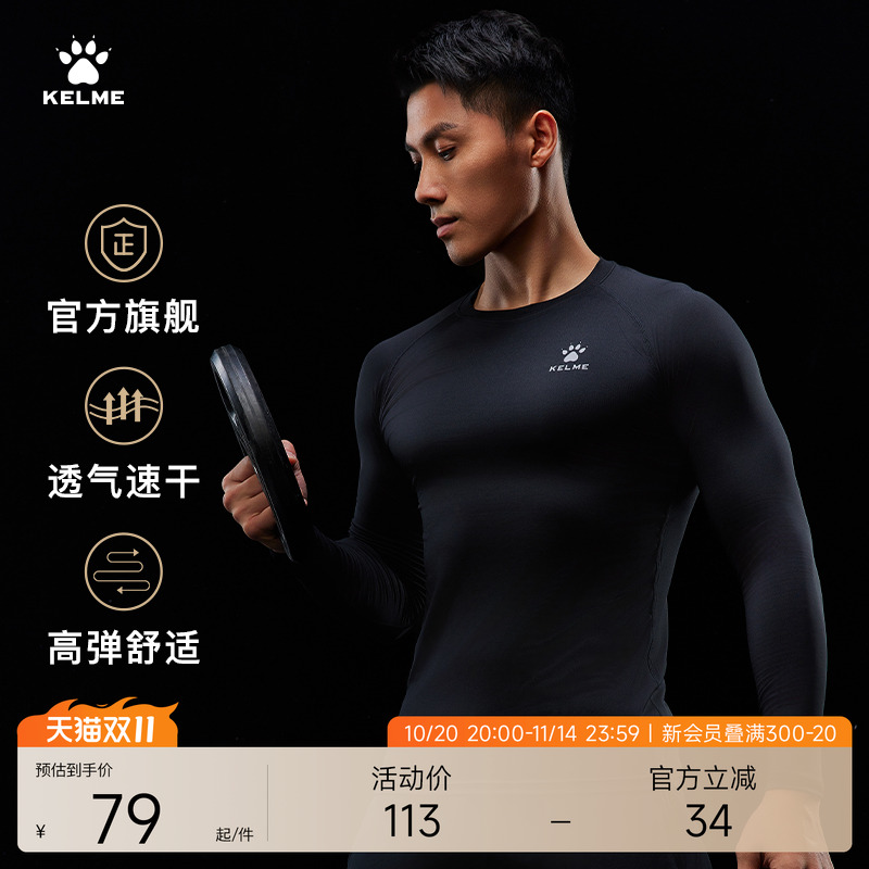 KELME卡尔美长袖紧身衣男健身训练服足球篮球速干运动加绒打底T恤