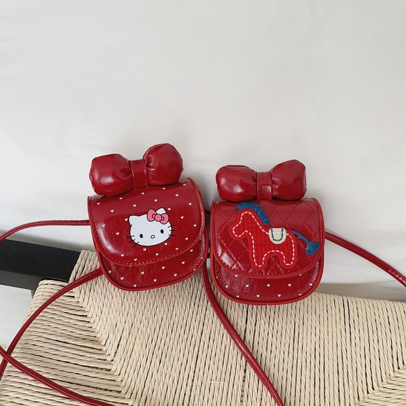 2026超火马年女宝宝压岁钱斜挎包红色可爱蝴蝶结小马儿童新年包包