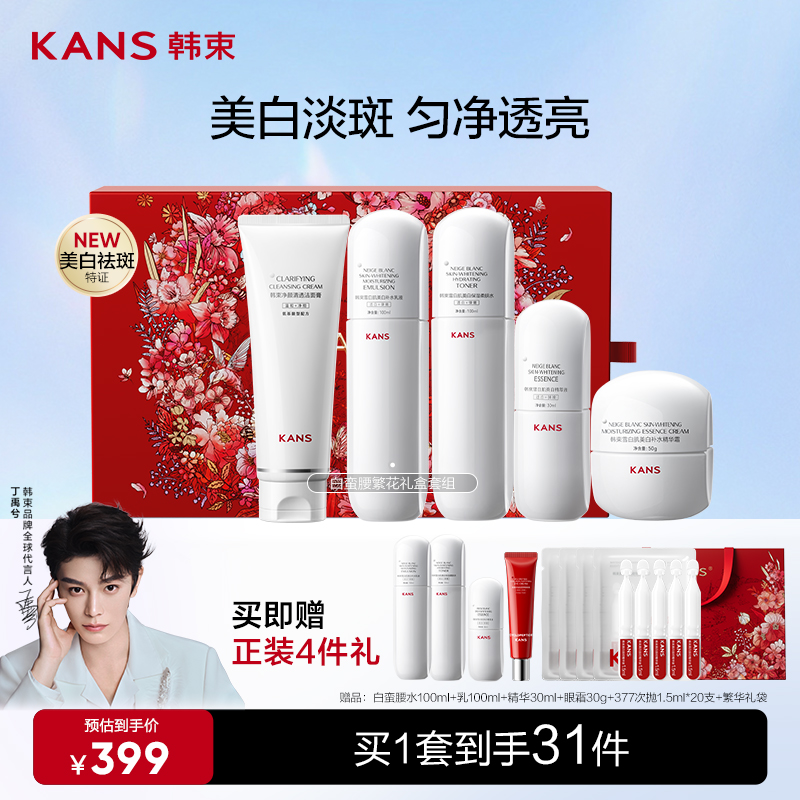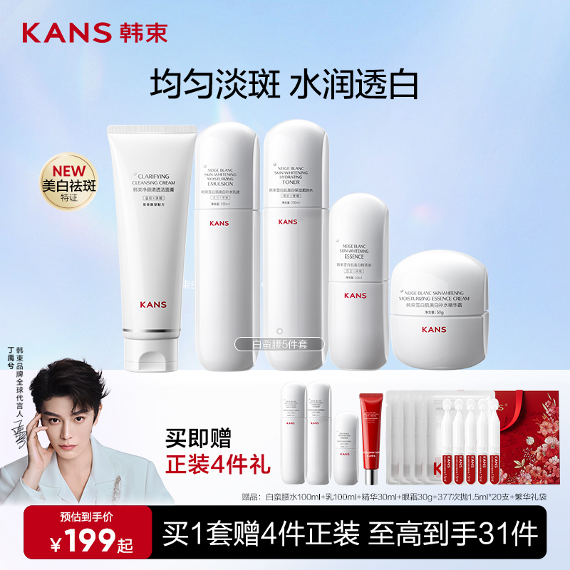 【双11立即抢购】韩束白蛮腰美白淡斑护肤品去黄提亮补水乳套装