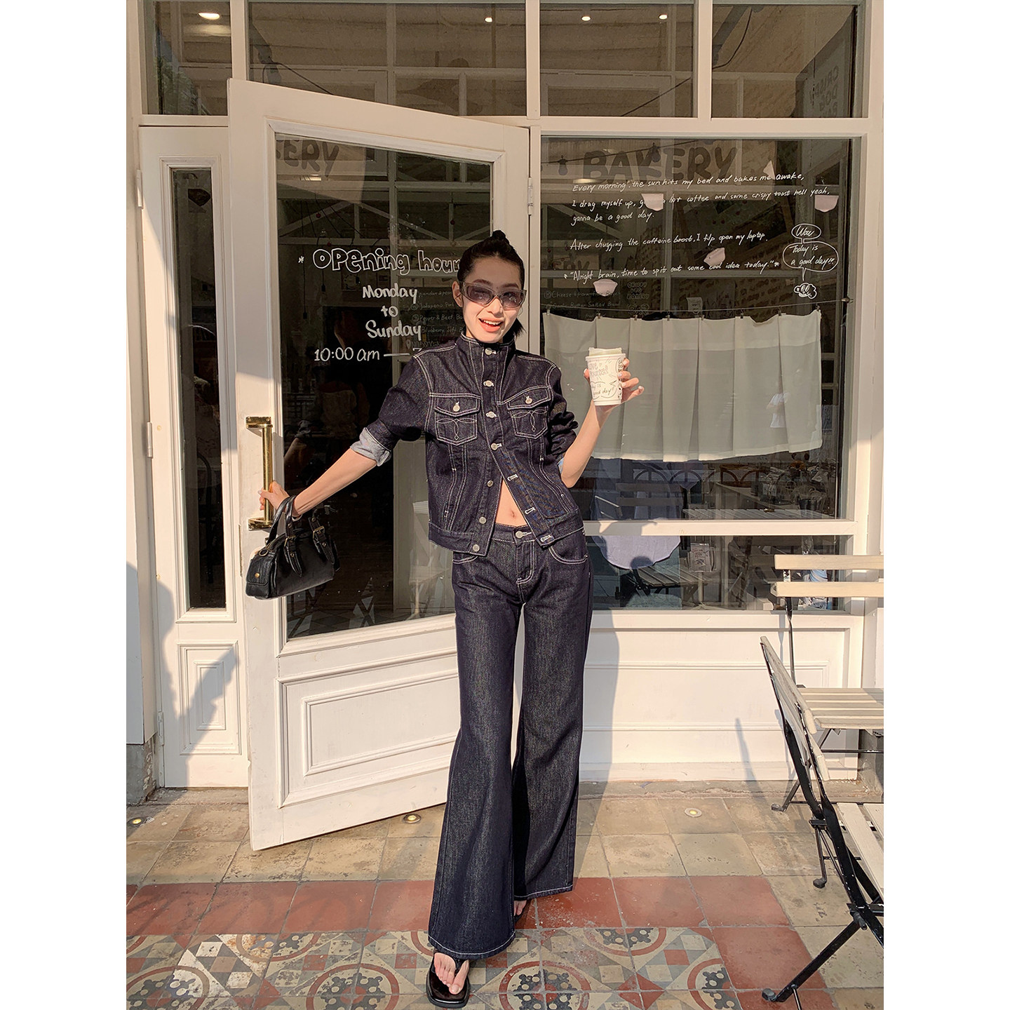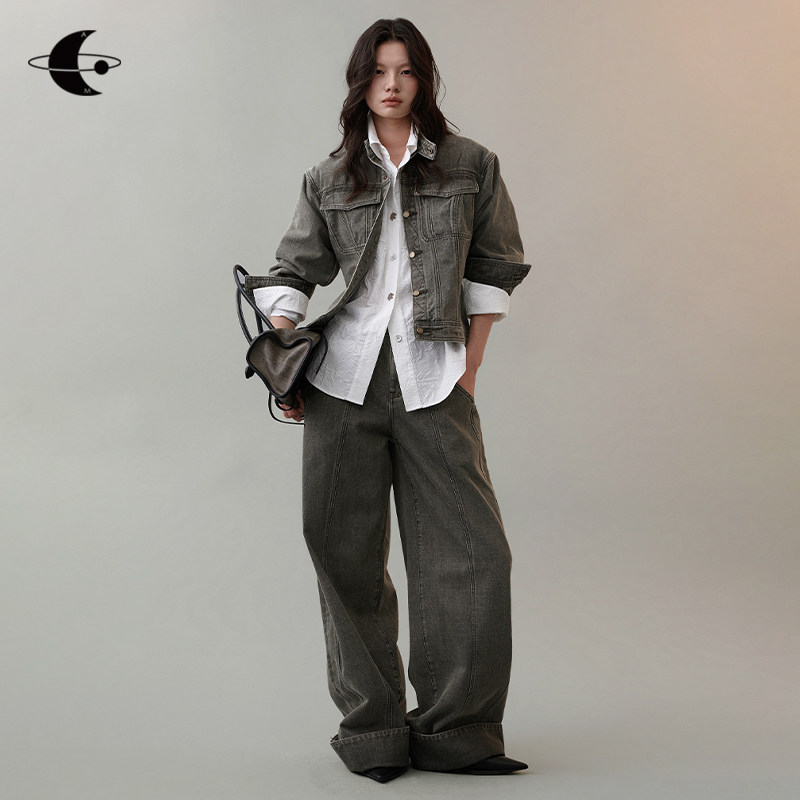 创世纪元【旧时光影】2025早秋两件套裤子外套女水洗做旧牛仔套装