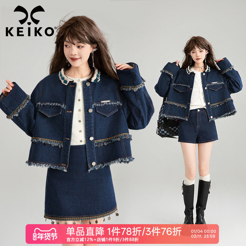 KEIKO 复古girl 少女感牛仔套装春季异域风牛仔外套+A字裙两件套