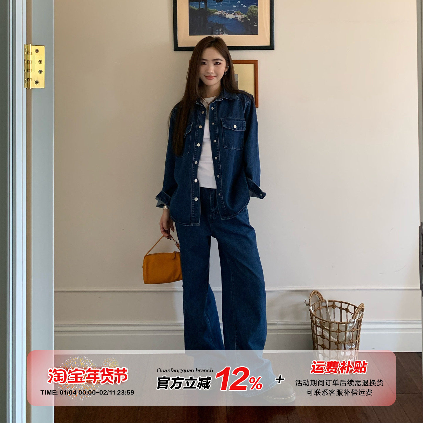 【限时价】橘子树在哪儿复古港风牛仔套装女秋显瘦外套裤子两件套