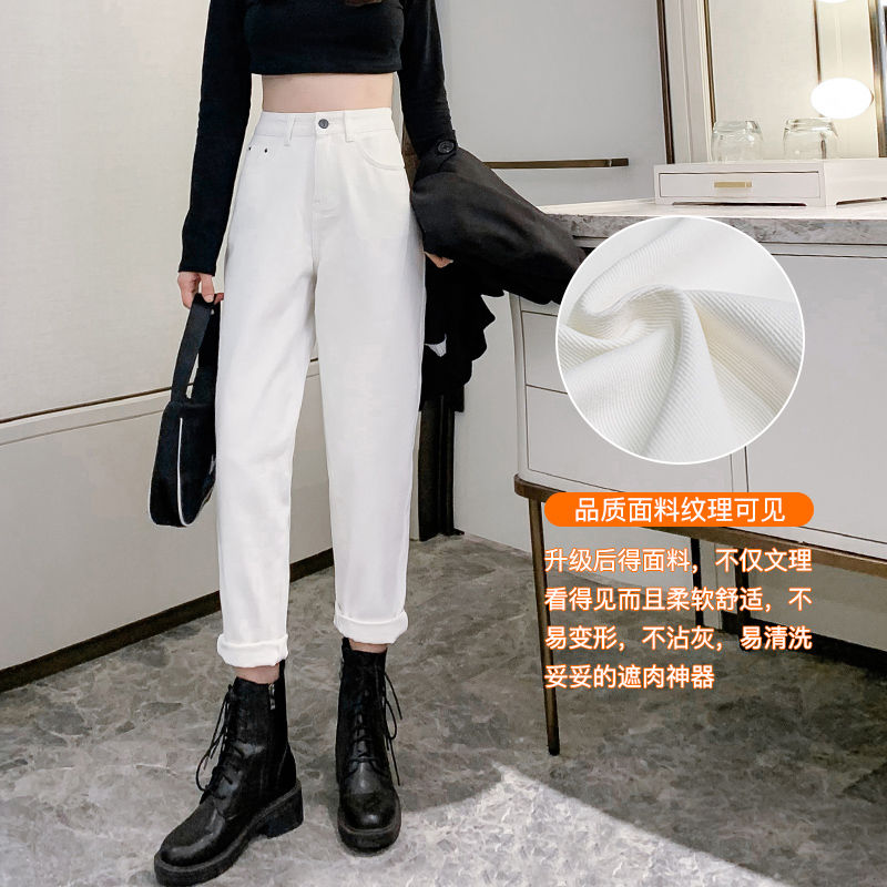 白色高腰百搭牛仔裤女宽松韩版学生春秋新款显瘦老爹九分哈伦裤潮