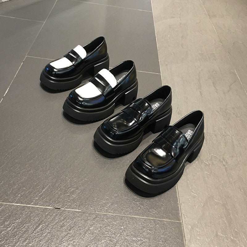【胡连馨同款】千百度厚底真皮乐福鞋女百搭通勤增高皮鞋深口单鞋