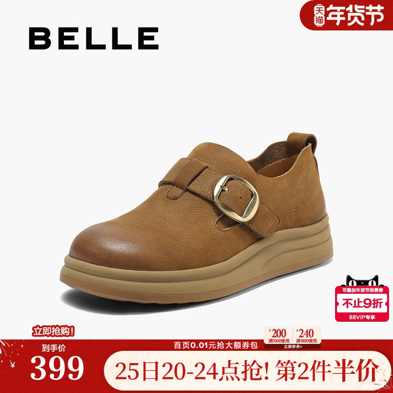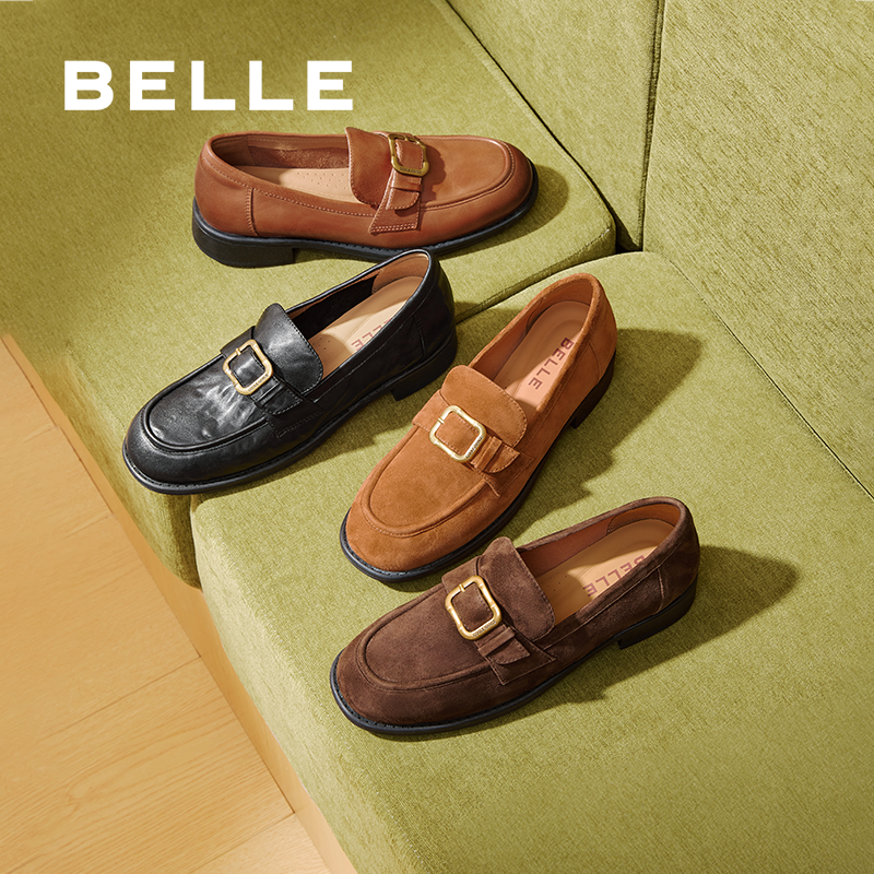 百丽女鞋子复古英伦风真皮乐福鞋女秋季新款深口单鞋子B2885CA5