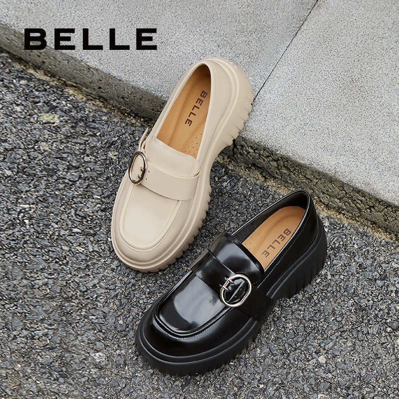 百丽学院风厚底乐福鞋女鞋春季新款JK鞋深口真皮单鞋A5W1DAA4