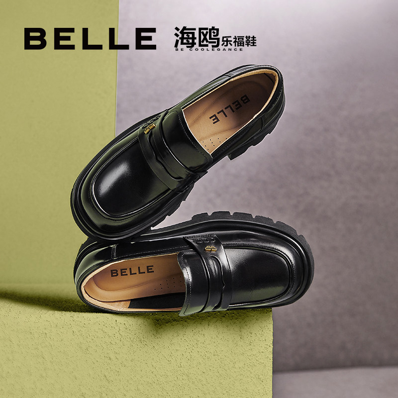 百丽海鸥乐福鞋女新款黑色小皮鞋厚底增高真皮深口单鞋子A5W1DCA4