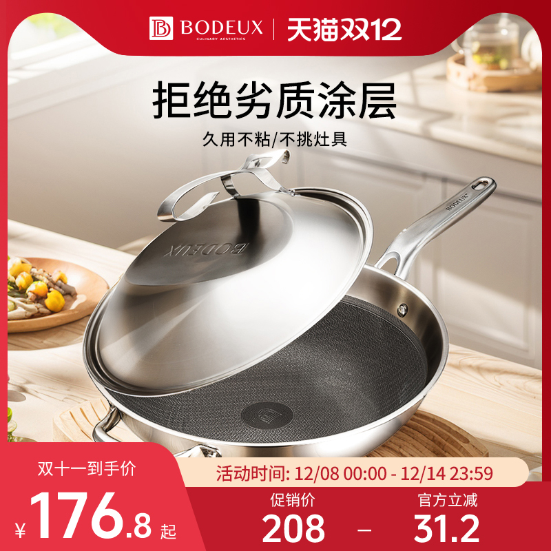 BODU钛合金炒锅不粘锅家用无涂层炒菜锅无油烟平底锅煤气灶通用