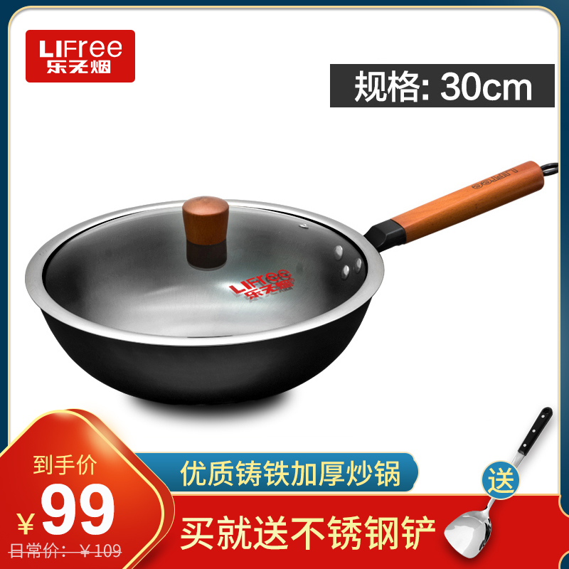 乐无烟无涂层无油烟铸铁铁锅炒锅电磁炉煤气灶通用 不生锈不粘锅