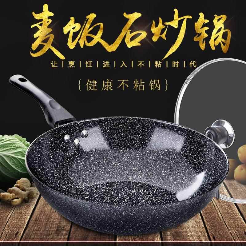 麦饭石不粘锅炒锅家用燃气适用电磁炉煤气灶专用通用无油烟炒菜锅