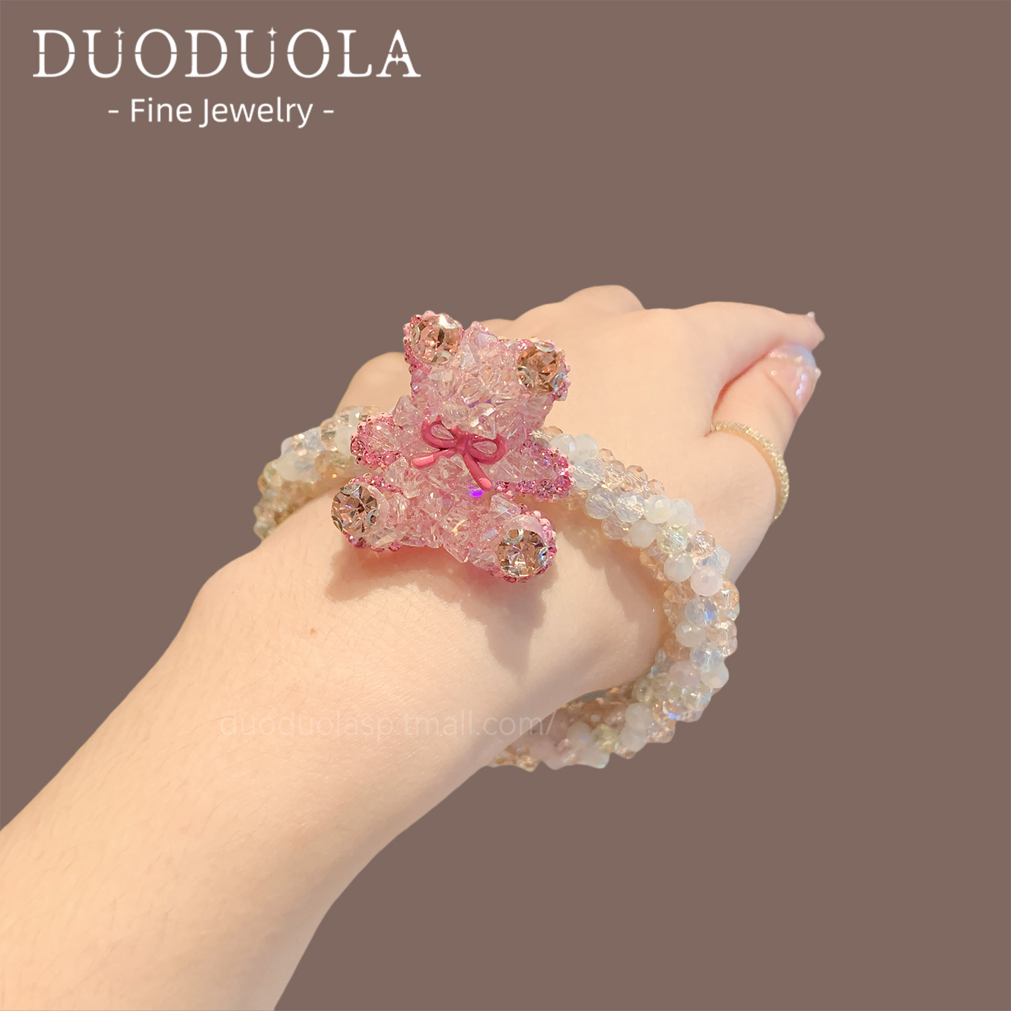 粉色甜美水晶小熊发绳2025新款后脑勺扎发头绳精致时尚发圈高马尾