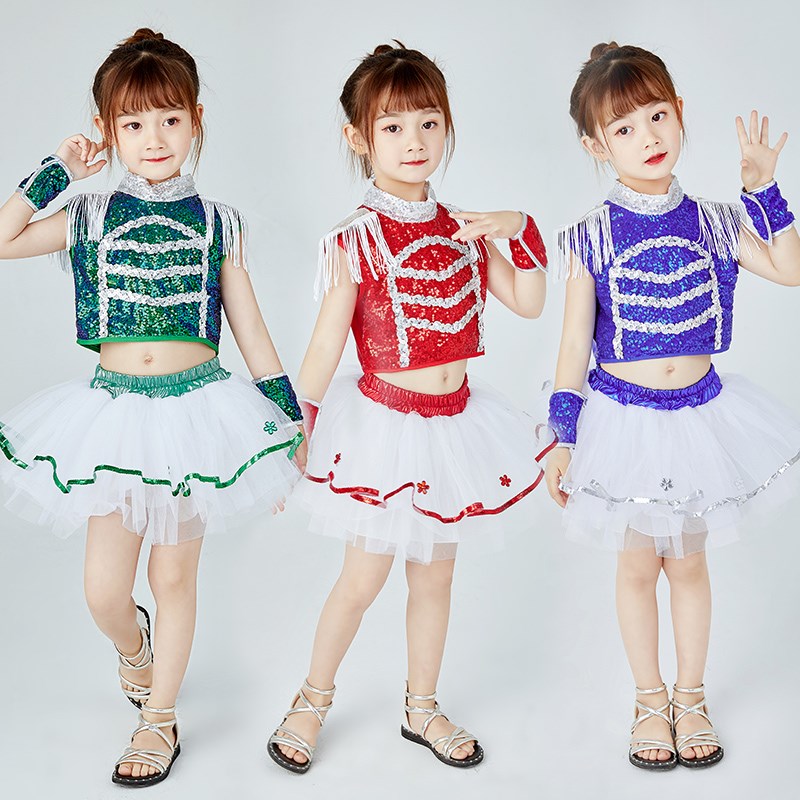 儿童啦啦队演出服装男女童架子鼓亮片爵士街舞运动会表演舞台班服