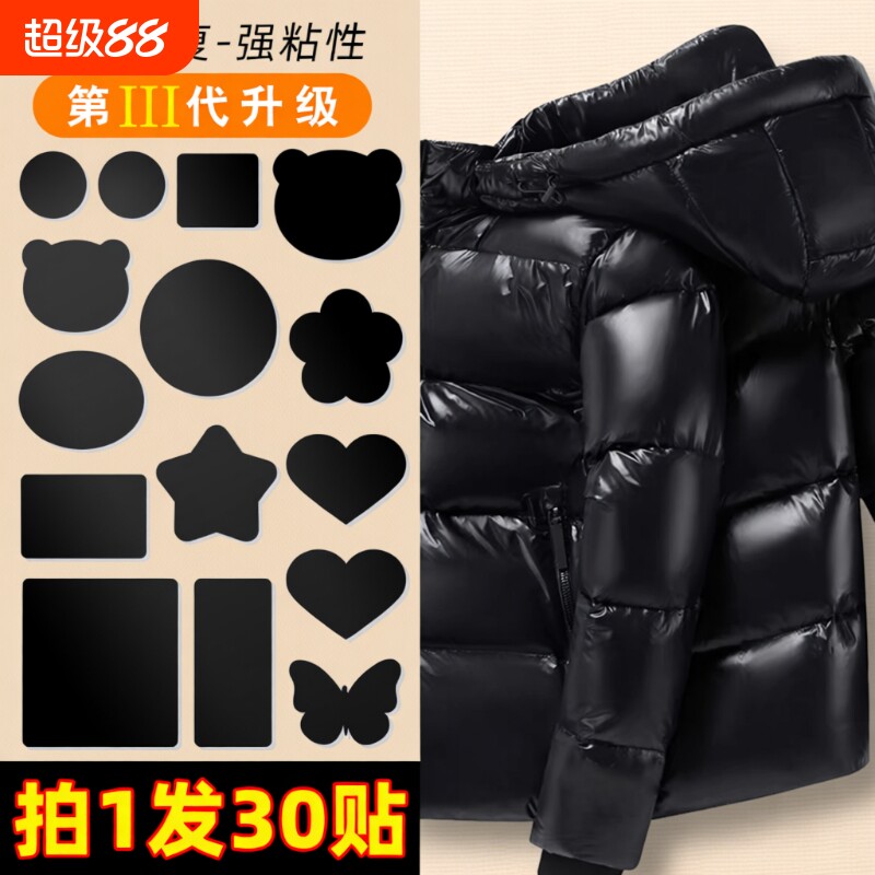 亮黑羽绒服补丁贴水洗不掉冲锋衣无痕修复破洞补衣贴花免缝烫贴花