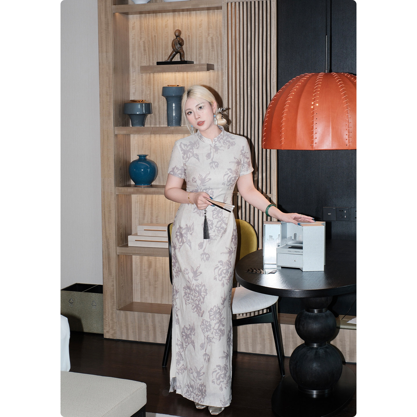 XINYI【花开富贵】夏季竹节新中式旗袍连衣裙收腰显瘦X625Q05612