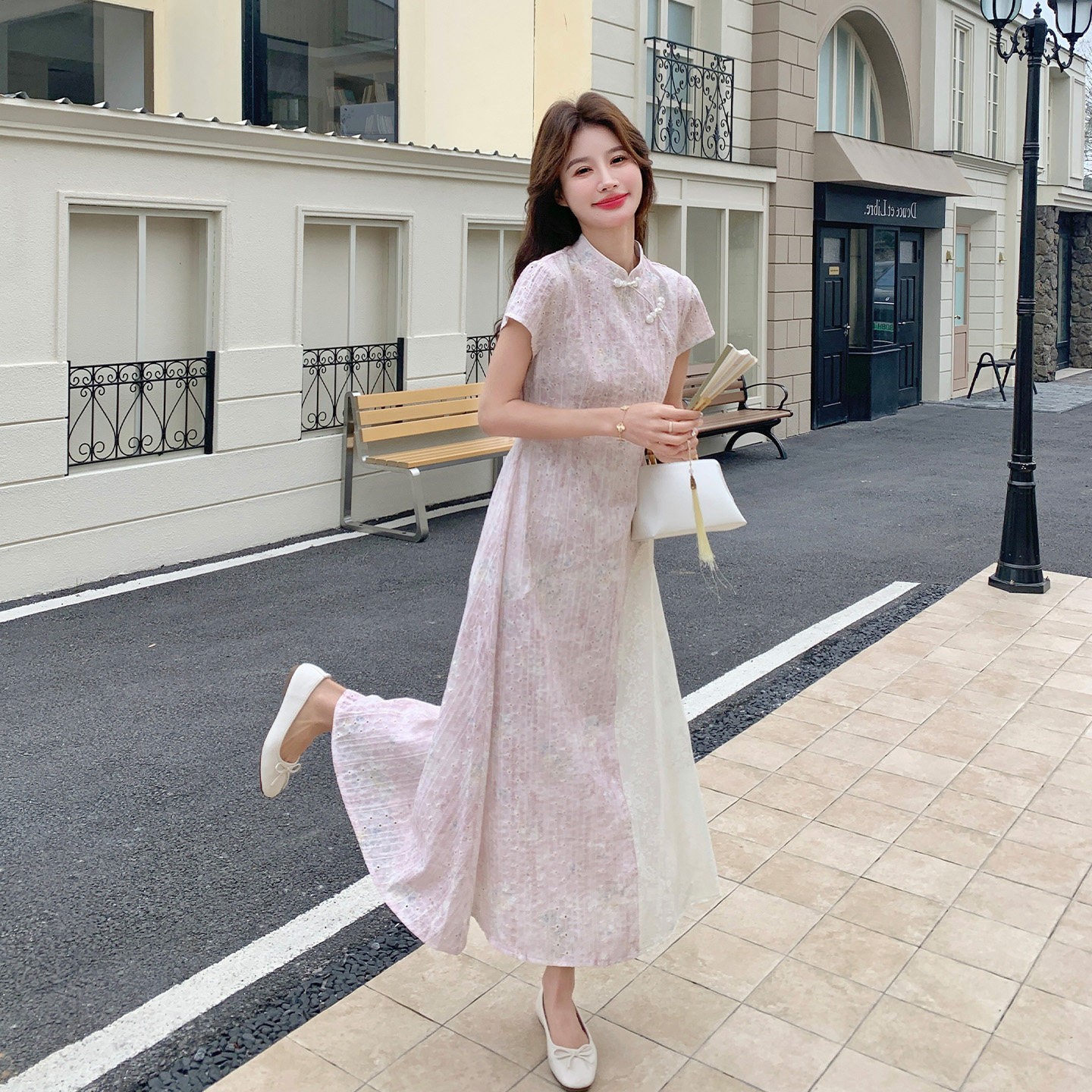 清冷感白月光新中式国风改良旗袍连衣裙女2026夏新款蕾丝拼接长裙