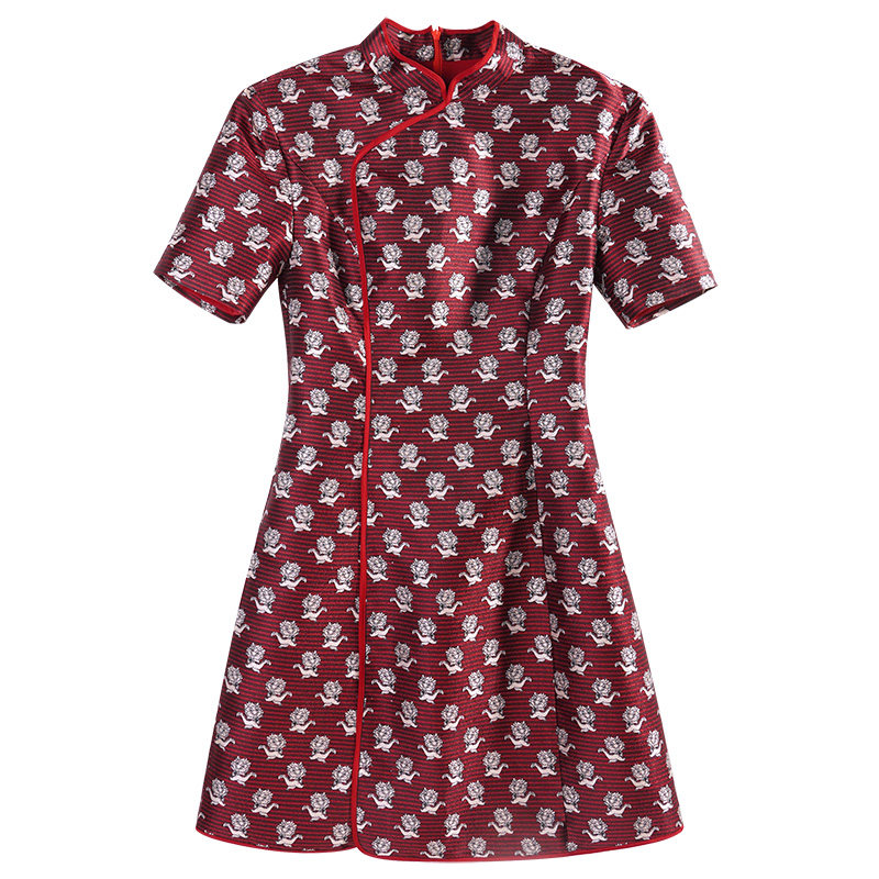 楠哥微胖mm复古收腰显瘦包臀连衣裙女大码国风新中式改良旗袍短裙