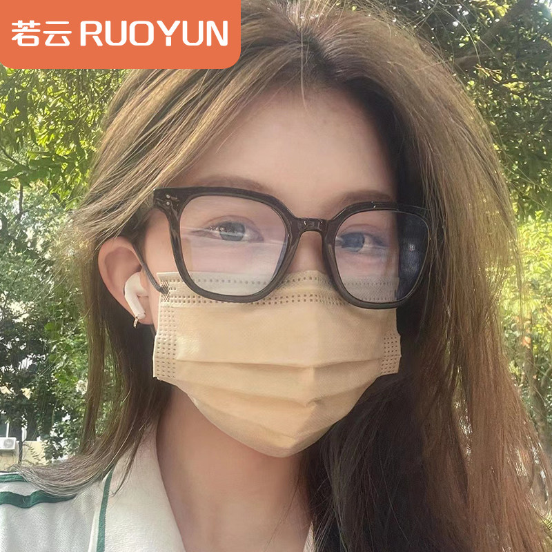 若云茶色半框眼镜女防蓝光素颜神器高级感眼睛框可配度数近视镜女